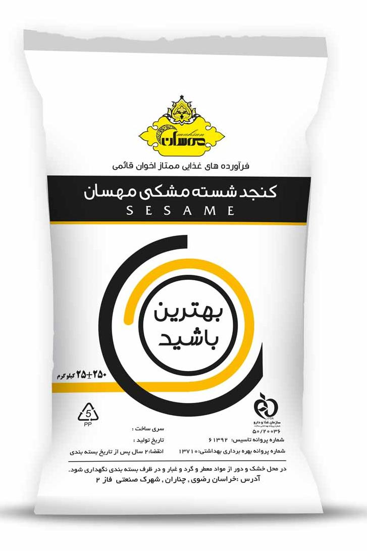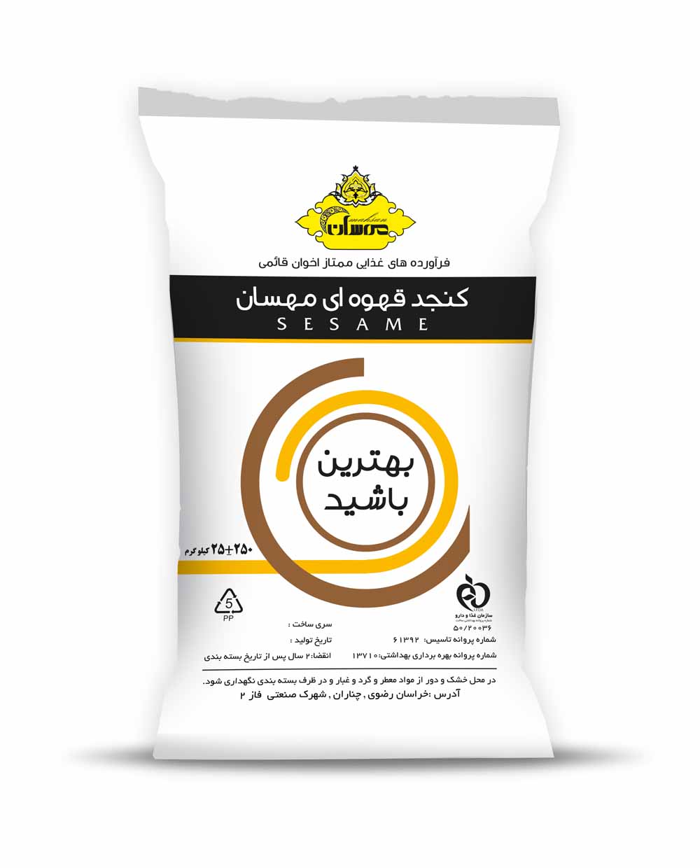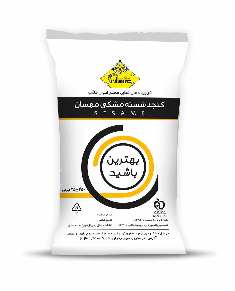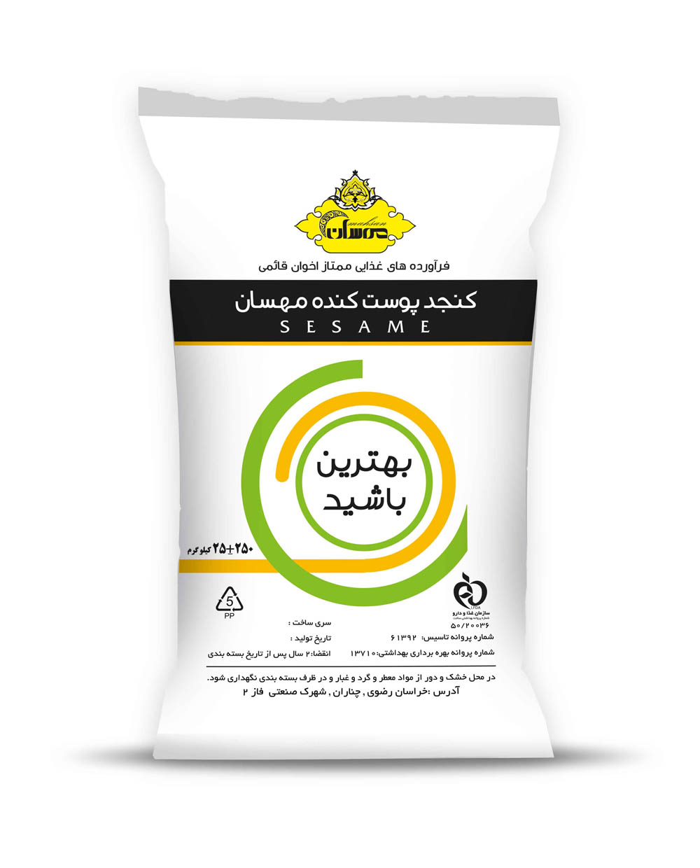 این محصول مطابق استانداردها و استفاده از آخرین تکنولوژی جهانی تولید گردیده است . در تولید کنجد مهسان لیزری ابتدا اقدام به خاک گیری نموده و سپس با دستگاههای Color sorter ( سورت لیزری) اقدام به جدا سازی دانه های سیاه و سایر نا خالصی ها منجمله فضله حیوانات مینماییم . محصول به دست آمده مناسب روغن گیری می باشد و به دلیل حذف دانه های سیاه از طعم و مزه بهتری برخوردار است و همچنین به دلیل جدا شدن دانه های مشکوک به فضله از نظر شرعی و اسلامی پاک می باشد .