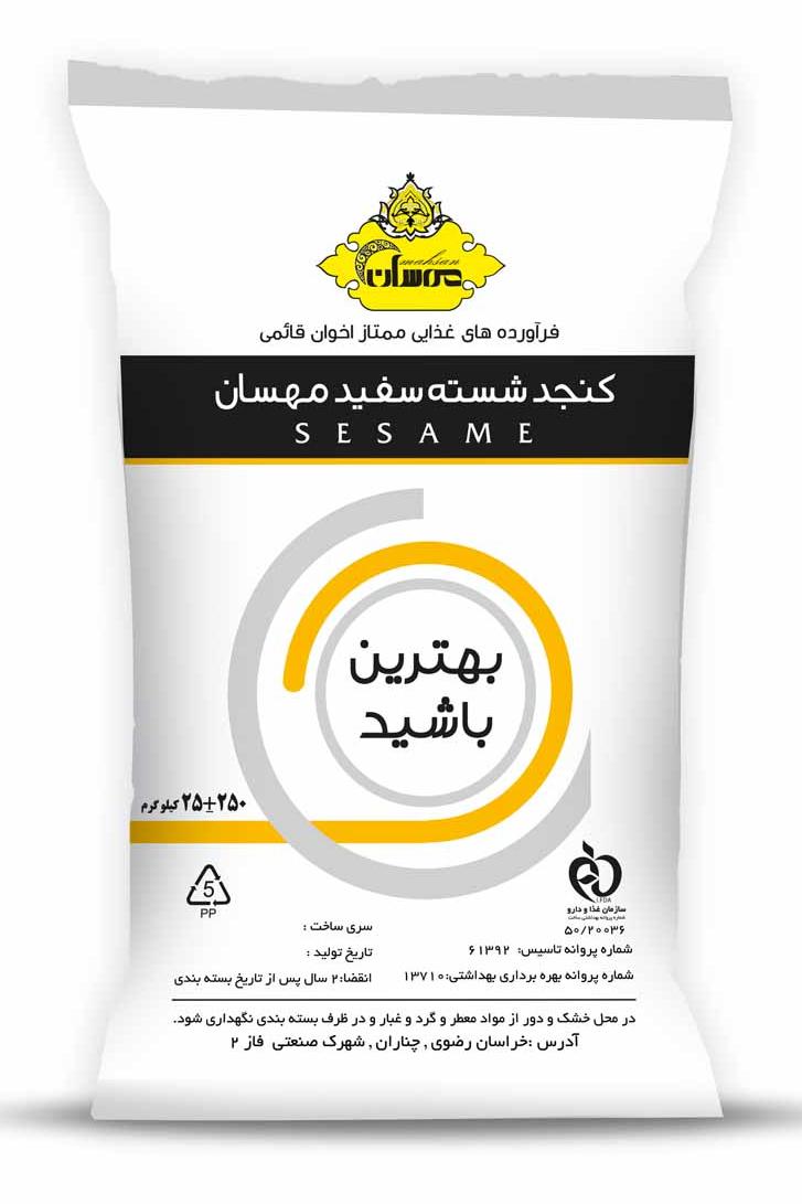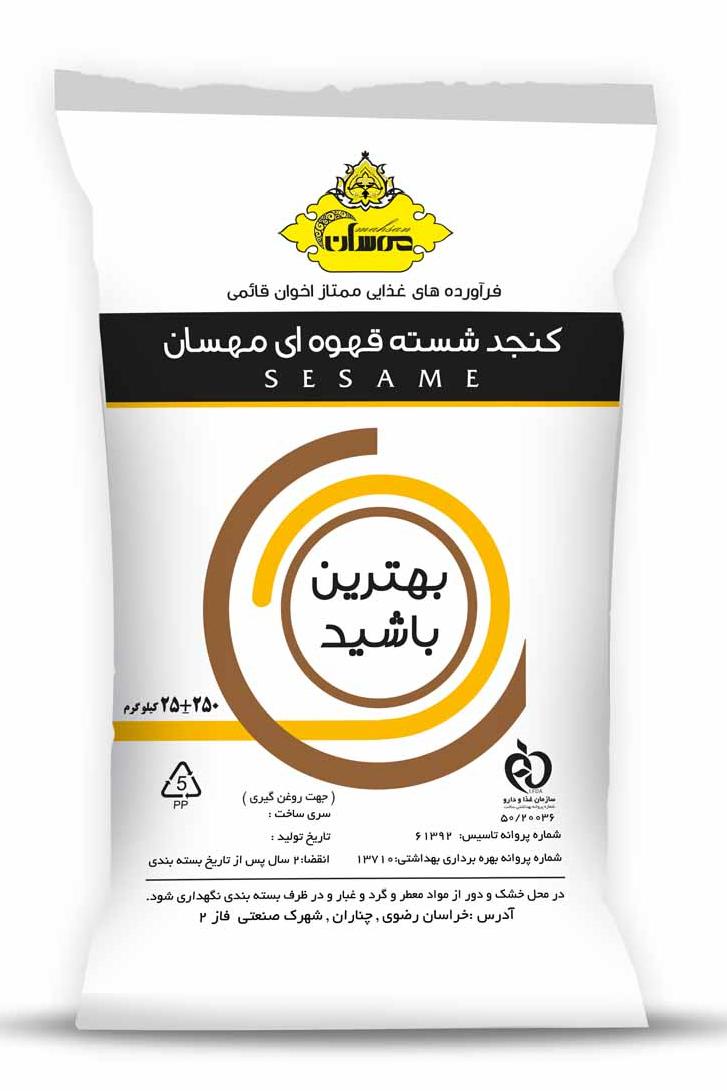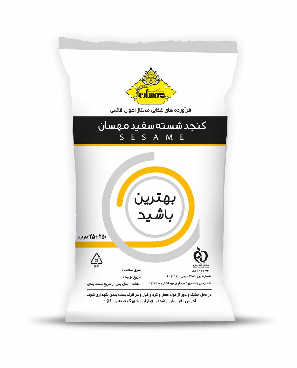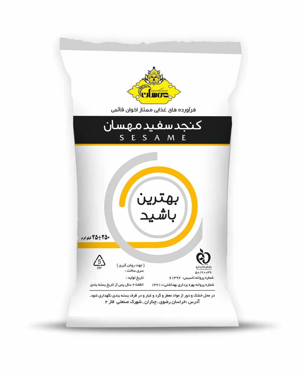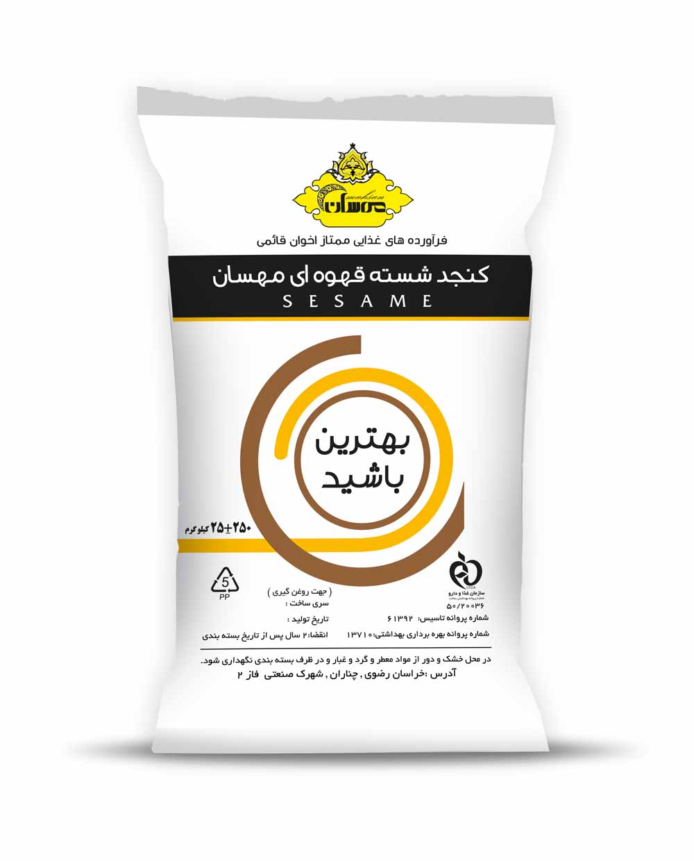 این محصول مطابق استانداردها و استفاده از آخرین تکنولوژی جهانی تولید گردیده است . در تولید کنجد مهسان لیزری ابتدا اقدام به خاک گیری نموده و سپس با دستگاههای Color sorter ( سورت لیزری) اقدام به جدا سازی دانه های سیاه و سایر نا خالصی ها منجمله فضله حیوانات مینماییم . محصول به دست آمده مناسب روغن گیری می باشد و به دلیل حذف دانه های سیاه از طعم و مزه بهتری برخوردار است و همچنین به دلیل جدا شدن دانه های مشکوک به فضله از نظر شرعی و اسلامی پاک می باشد .